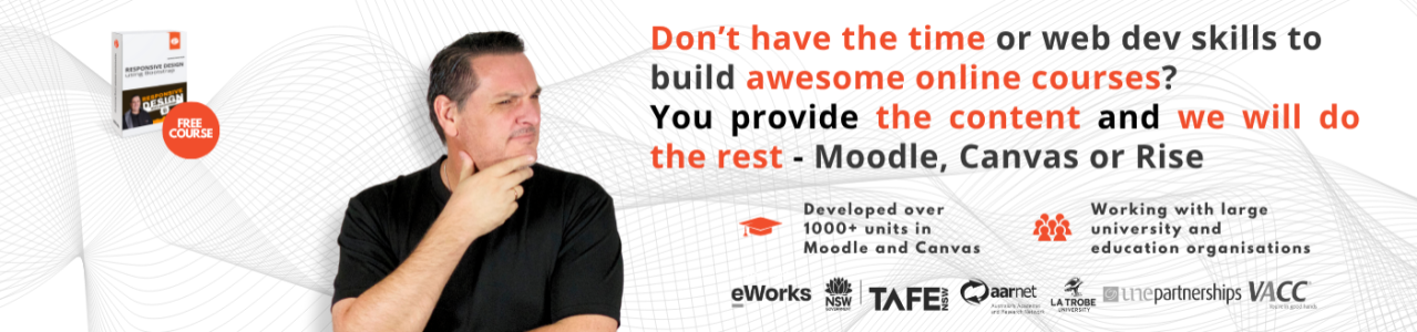 Learn how to create responsive web based content for your LMS. Especially for the Moodle LMS but will soon include courses on the Canvas LMS and Articulate Rise.